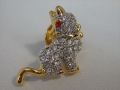 ニューヨークマンハッタンヒルトンホテル1階の「Landau Jewelryランダウジュエリー」にて購入しました。子供たちの楽しい笑いが聞こえてきそうな、赤い目のネコのピンバッチです。サイズ:縦:約1.8cm 横:約1.5cm 素材:土台(合金)・キュービックジルコニア[CZ]・レッドルビー ジルコニア[CZ](眼)