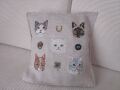 5匹のネコと幸運のお守り金色の蹄鉄、どんぐり、邪眼、四つ葉のクローバーのクッションカバーです。不思議な世界と素敵な物語の「Coral&Tusk」。デザイナーのステファニー・ハウズリーが立ち上げる。インドで生産し、ブルックリンのアトリエ手にて作業で仕上げ。 サイズ:縦:30cm 横:30cm(12インチ×12インチ) ※犬とネコのシリーズは売上の一部をASPCA動物保護団体に寄付をしています。原産国:インド 素材:麻100%(リネン生地に刺繍) ニューヨークブルックリン「コーラル&タスク」アトリエにて購入しました。