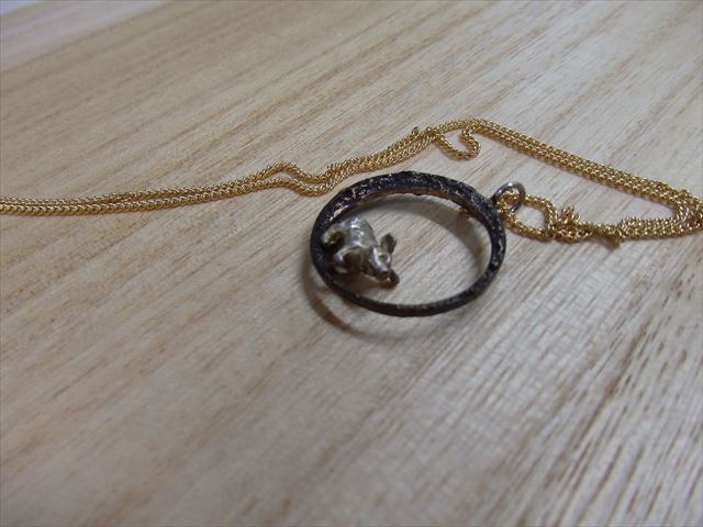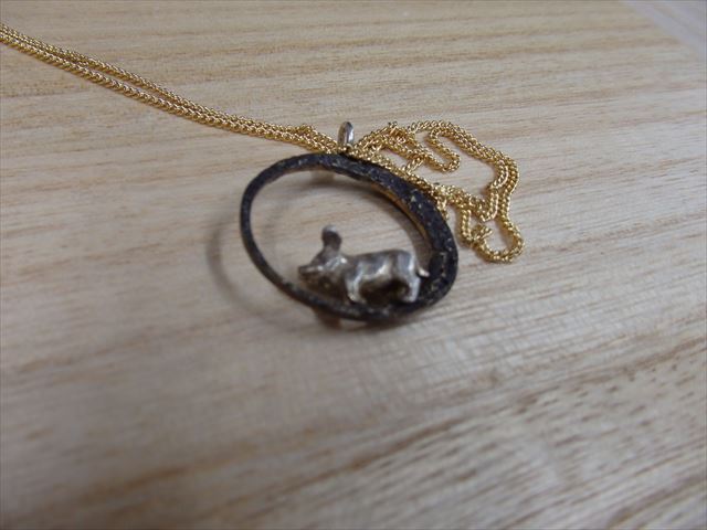 ぶた(ハンドメイドアクセサリーデザイナー 宮本 厚オリジナル作品)ネックレス(特殊合金・シルバー925使用) AMO3